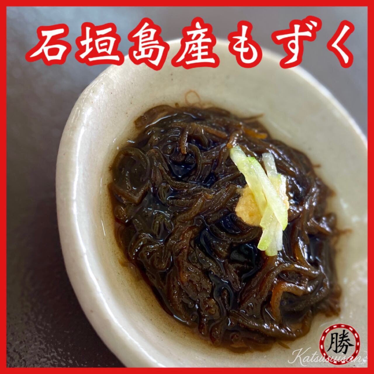 石垣島のきれいな海で育った、勝水産の塩漬けもずくです。