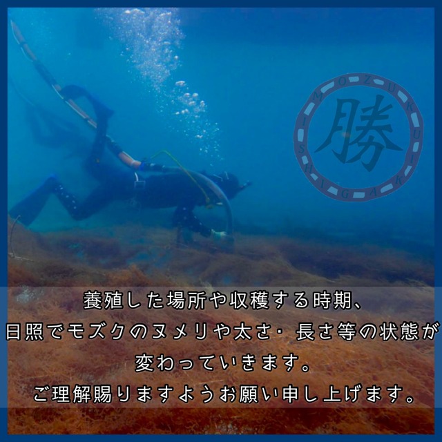 石垣島の豊かな海で育ったもずくを、勝水産自家製の特製タレで味付けしました。